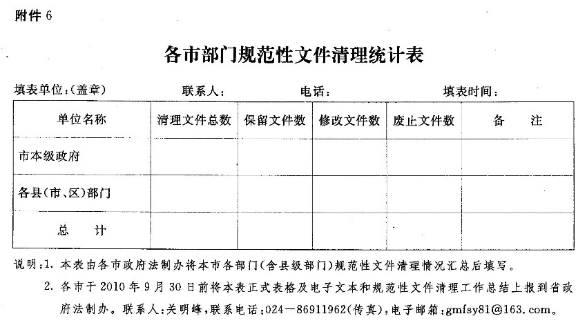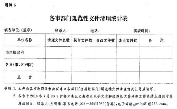 6.各市部门规范性文件清理统计表
