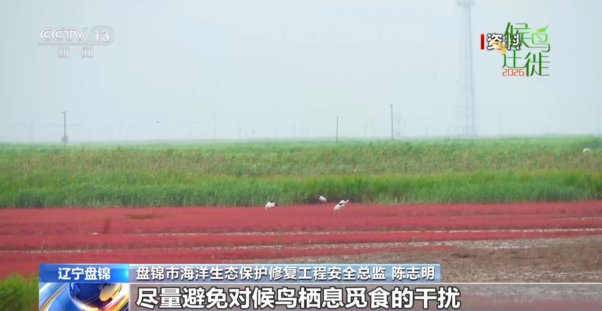盘锦市海洋生态保护修复工程安全总监 陈志明:在春天候鸟迁徙期,我们24小时监测鸟类活动,尽量避免对候鸟栖息觅食的干扰。