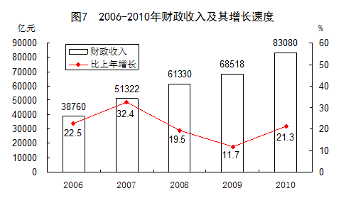 全年财政收入83080亿元,比上年增加14562亿元,增长21.3%;其中税收收入73202亿元,增加13680亿元,增长23.0%。