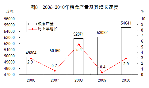 资料来源:本公报中城镇新增就业、登记失业率、社会保障数据来自人力资源社会保障部;外汇储备和汇率数据来自外汇局;财政数据来自财政部;水产品产量数据来自农业部;木材产量、林业、森林火灾数据来自林业局;灌溉面积、水资源数据来自水利部;新增发电机组容量、新增22万伏及以上变电设备数据来自中电联;新建铁路投产里程、增建铁路复线投产里程、电气化铁路投产里程、铁路运输数据来自铁道部;新建公路、港口万吨级码头泊位新增吞吐能力、公路运输、水运、港口货物吞吐量数据来自交通运输部;新增光缆线路长度、新增数字蜂窝移动电话交换机容量、电话用户、上网人数等通信数据来自工业和信息化部;保障性住房、城市污水处理、集中供热面积、建成区绿地率来自住房城乡建设部;货物进出口数据来自海关总署;外商直接投资、对外直接投资、对外承包工程、对外劳务合作等数据来自商务部;民航数据来自民航局;管道数据来自中石油、中石化;民用汽车数据来自公安部;邮政业务总量数据来自邮政局;旅游数据来自旅游局;货币金融数据来自人民银行;上市公司数据来自证监会;企业债券、国家工程研究中心、企业技术中心、新兴产业创投等数据来自发展改革委;保险业数据来自保监会;教育数据来自教育部;安排科技计划课题、技术合同等数据来自科技部;专利数据来自知识产权局;发射卫星数据来自国防科工局;质量检验、国家标准制定修订数据来自质检总局;气象预警、平均气温、登陆台风数据来自气象局;地震数据来自地震局;测绘数据来自测绘局;海洋观测站、海洋灾害造成直接经济损失、发生赤潮面积来自海洋局;艺术表演团体、博物馆、公共图书馆、文化馆数据来自文化部;广播、电视、电影数据来自广电总局;报纸、期刊、图书数据来自新闻出版总署;档案数据来自档案局;体育数据来自体育总局,其中亚残运会数据来自中国残联;世博会数据来自上海世博会事务协调局;卫生、新农合数据来自卫生部;社会服务、低保和五保救济数据、各类自然灾害造成直接经济损失、农作物受灾面积、洪涝滑坡和泥石流灾害造成直接经济损失及死亡人数、旱灾造成直接经济损失、低温冷冻和雪灾造成直接经济损失及死亡人数来自民政部;国有建设用地土地供应、综合地价等数据来自国土资源部;环境监测数据来自环境保护部;安全生产数据来自安全监管总局;其他数据均来自国家统计局。