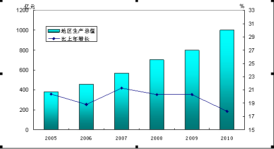 初步核算,全年实现生产总值1002.4亿元,按可比价格计算,比上年增长17.8%。分产业看,第一产业增加值77.2亿元,增长6.0%,第二产业增加值554.8亿元,增长18.5%,第三产业增加值370.4亿元,增长19.0%。三次产业增加值占生产总值的比重为7.7:55.3:37.0。人均生产总值42604元,按可比价格计算,比上年增长17.3%。