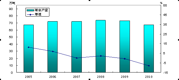 全年粮食总产量达67.5万吨,比上年减产5.8万吨。蔬菜产量85.2万吨,比上年下降2.5%。水果产量68.2万吨(全口径),比上年下降1.3%。全年农作物总播种面积112.1千公顷,比上年下降0.4%。其中,粮食作物播种面积96.6千公顷,下降0.7%;非粮食作物播种面积15.5千公顷,增长1.9%。
