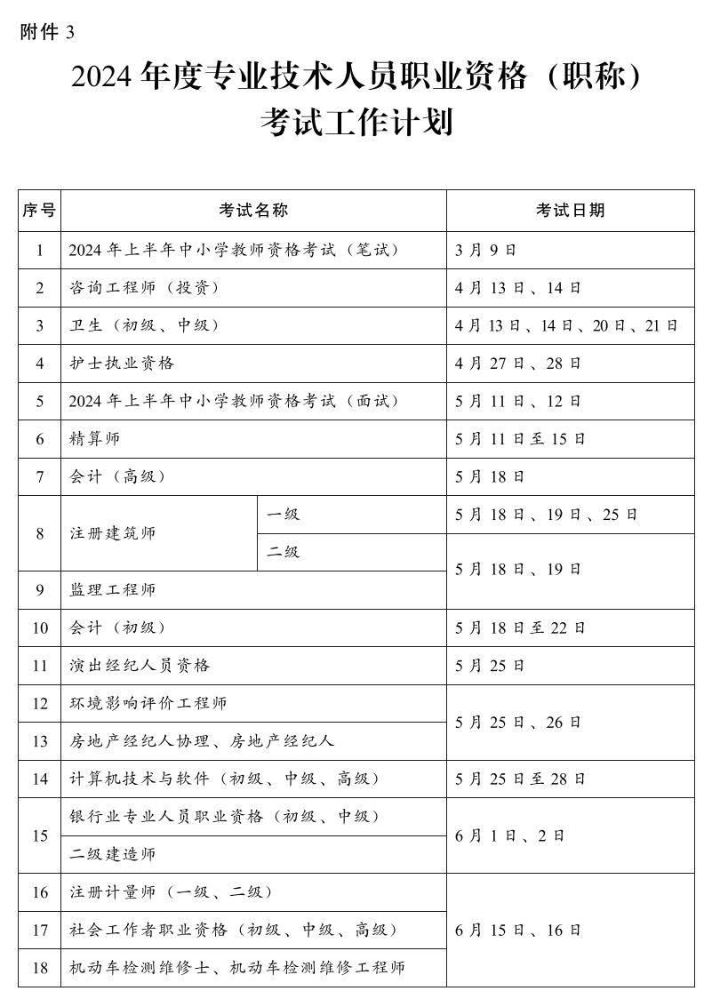 3.2024年度专业技术人员职业资格(职称)考试工作计划