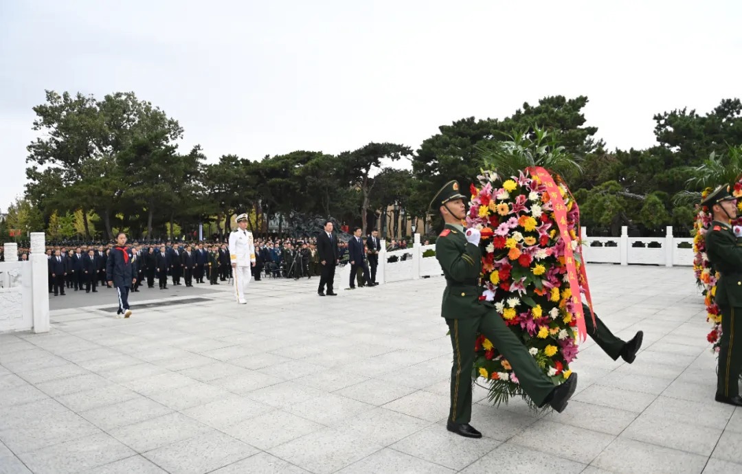 9月30日,辽宁省暨沈阳市向烈士纪念碑敬献花篮仪式在沈阳抗美援朝烈士陵园举行。