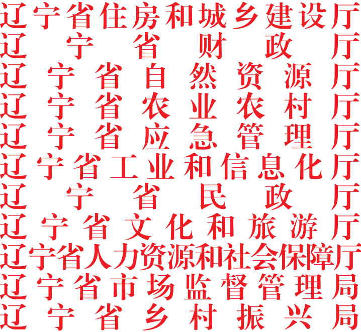 各市住建局、财政局、自然资源局、农业农村局、应急管理局、工业和信息化局、民政局、文化和旅游局、人力资源和社会保障局、市场监管局、乡村振兴局,沈阳市建设局、房产局、执法局: