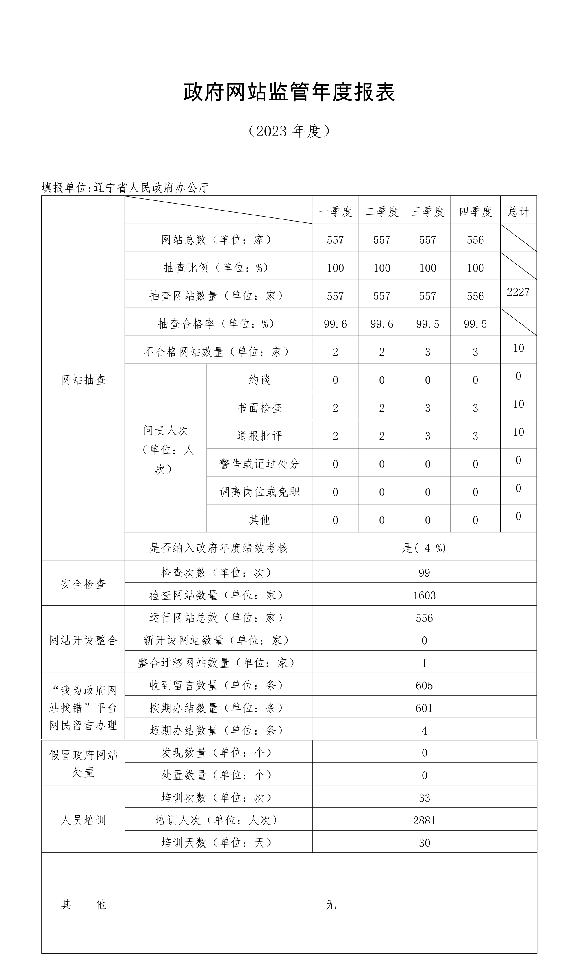 辽宁省政府网站监管年度报表
