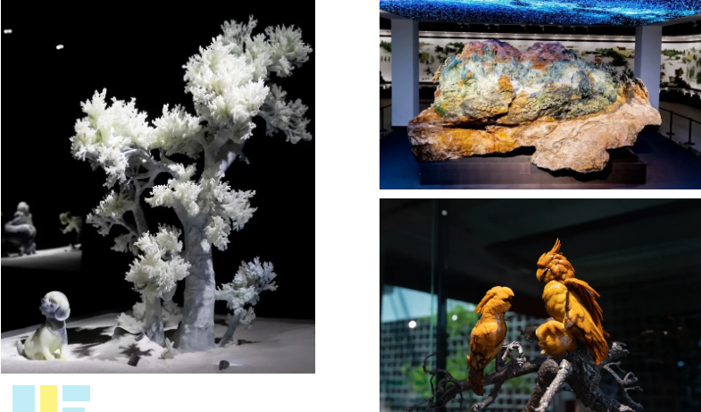 ●亿年淬炼・玉脉寻踪:哈达碑镇的玉石矿井如深藏大地的翡翠匣,将亿万年地质史诗在眼前铺展。从红山文化玉猪龙到蔚为壮观的玉雕“万里长城”,皆为玉脉传奇。