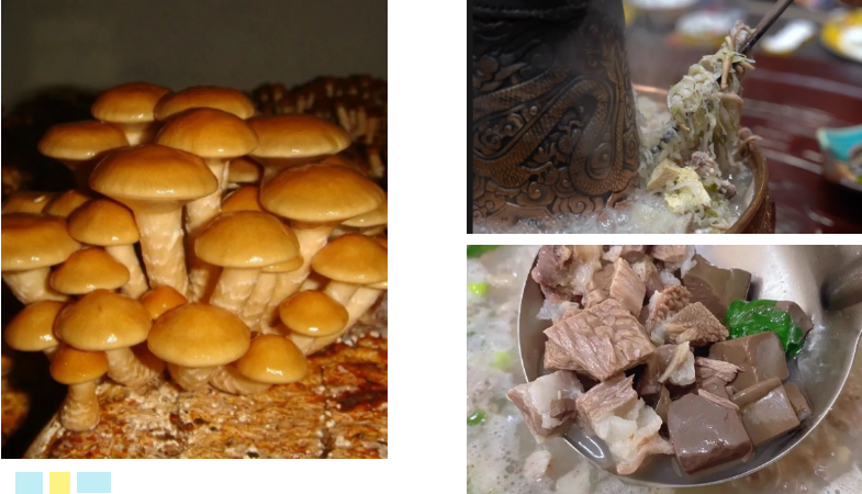 ●滑子蘑・山林间的鲜滑密码。岫岩滑子蘑菌盖如凝脂般嫩滑,清晨采摘即入馔。清炒脆嫩爽口,煲汤浓醇沁脾,入火锅则吸饱骨汤精华。作为中欧地理标志产品,已是世界品味辽宁的舌尖符号。