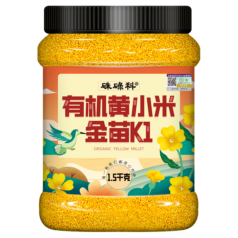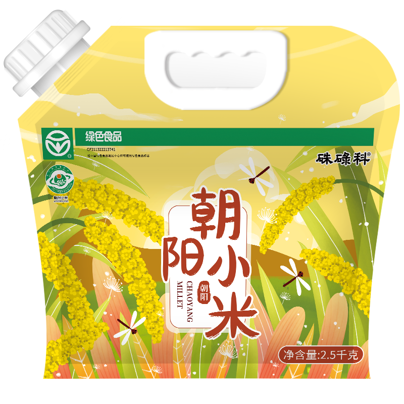 硃碌科小米产自辽宁朝阳杂粮核心产区——朱碌科镇自有基地,拥有万亩种植规模及百余种杂粮。土地肥沃,阳光充沛,无霜期长,昼夜温差大。恒温储存,新鲜研磨后装袋。品种为黄金苗K1,有机认证可追溯,一袋一码可查询。5斤家庭量贩装,米质糯软,香气浓郁。采用遮光纸袋双层真空包装,设计简约。适合煮粥、米饭,早中晚餐皆宜。