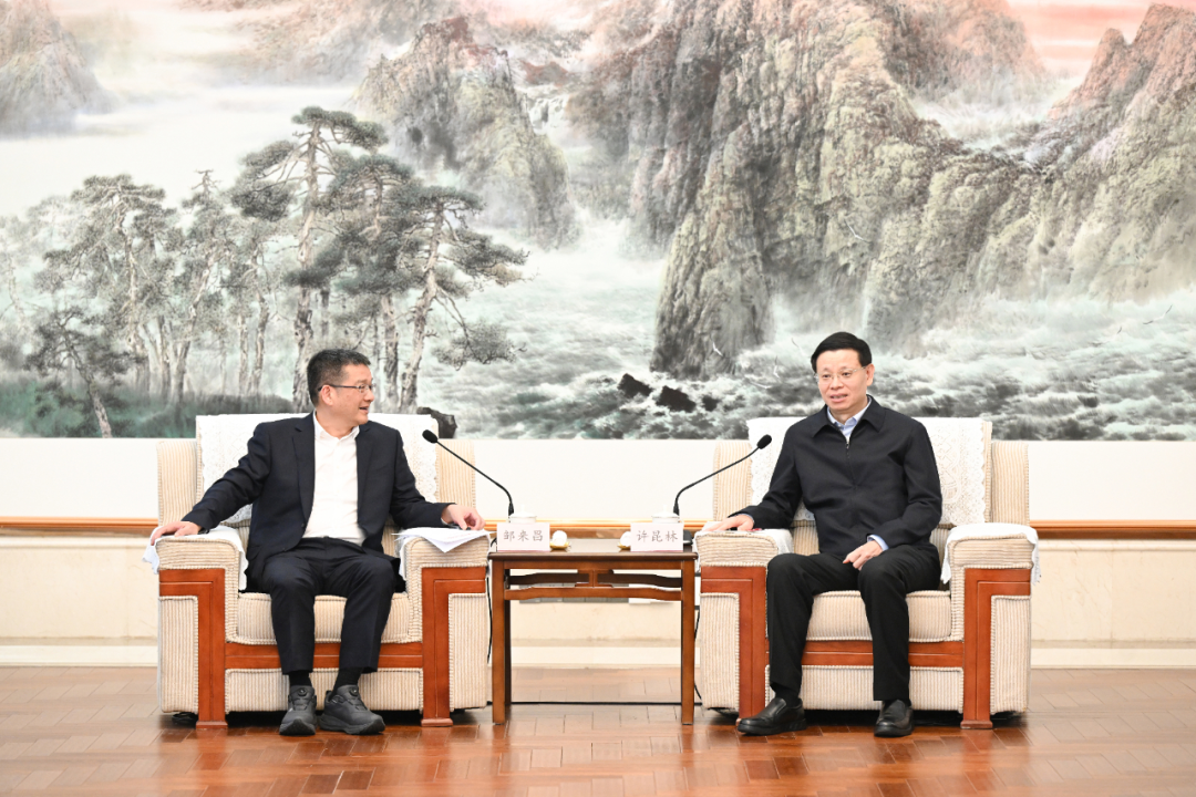 许昆林对邹来昌一行来辽共商合作、共谋发展表示欢迎。他说,辽宁正深入学习贯彻党的二十届四中全会和中央经济工作会议精神,全面贯彻落实习近平总书记对辽宁的重要讲话和重要指示精神,认真履行维护国家“五大安全”重要使命,牢牢把握高质量发展这个首要任务,夯实基础、全面发力,推动全面振兴取得新突破。辽宁矿产资源丰富,多个矿种储量位居全国首位,金资源量大幅跃升,选矿冶炼科研实力和技术积累丰厚。我们将深入实施新一轮找矿突破战略行动,强化矿产资源开发全省统筹,建设世界级菱镁产业基地和国家级铁矿、黄金基地,推动矿山绿色转型,加快发展壮大矿业经济。紫金矿业是全球领先的矿业龙头企业,双方合作空间广阔。希望紫金矿业深耕辽宁,探索合作方式、创新开发模式,共同打造全链条黄金产业集群,助力矿山绿色化、智能化、集约化升级,与科研机构开展联合攻关,布局落地更多矿业上下游产业项目,携手实现互利共赢。我们将全力打造一流营商环境,及时高效提供全方位要素保障、全生命周期服务,为企业在辽发展创造更好条件。