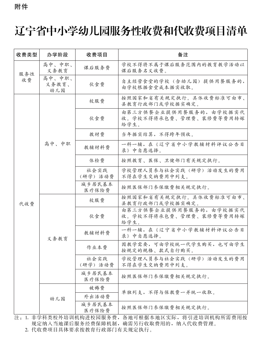 附件:辽宁省中小学幼儿园服务性收费和代收费项目清单