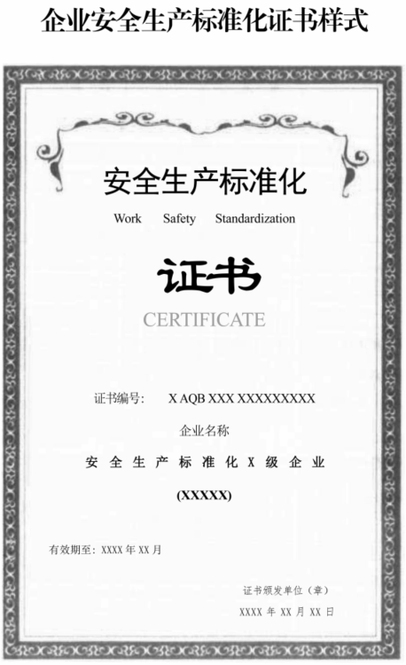 3.企业安全生产标准化证书样式