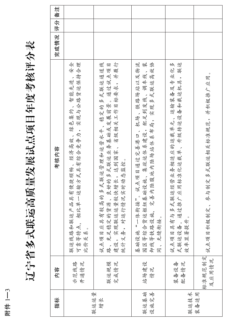 1—3.辽宁省多式联运高质量发展试点项目年度考核评分表