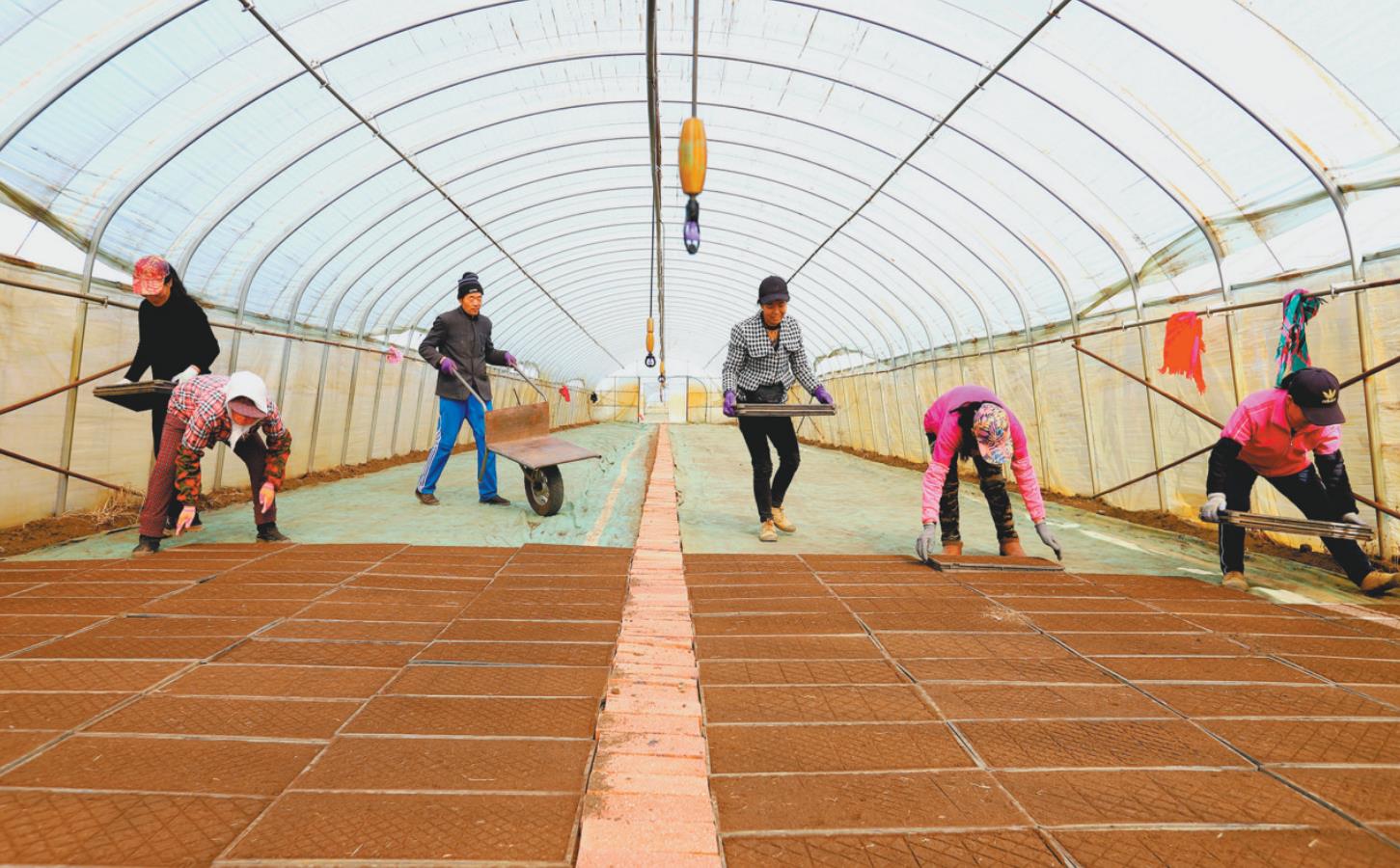 天气转暖,春耕备耕到了关键时期,我省各地水稻育苗工作陆续展开。3月27日,记者在沈阳市辽中区茨榆坨街道小莲花村辽中友联家庭农场看到,村民正在水稻育苗大棚里忙着筛土、铺种,该农场今年负责5000亩地的水稻育苗工作,将持续半个月时间。