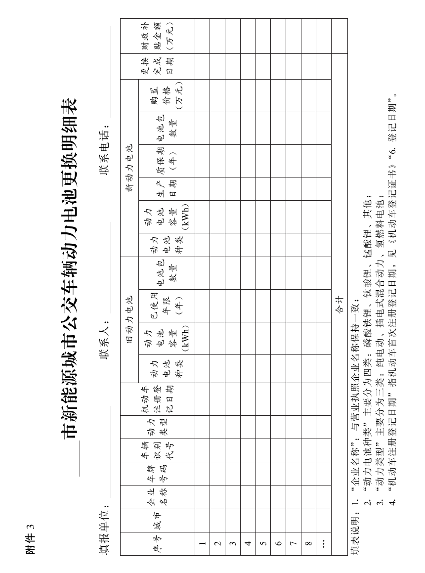 附件:1. 市新能源城市公交车车辆更新与动力电池更换汇总表