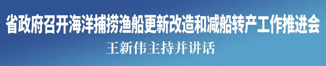 在听取省农业农村厅工作汇报和沿海六市意见建议后,王新伟指出,推进海洋捕捞渔船更新改造和减船转产,加快渔船“木改钢”,事关渔业本质安全和高质量发展,事关广大渔民切身利益。当前,各项工作全面启动,财政金融支持体系初步建立,政策举措逐步完善,难点堵点问题加快疏通,各项工作取得阶段性成效。同时,仍存在政策适配度、精准度不够,工作推进不平衡等问题,需持续加大攻坚力度。要更好统筹发展和安全,树牢造福人民的政绩观,优化政策供给,完善工作机制,做好服务保障,扎实推进渔船“木改钢”,全面提升渔业本质安全水平。
