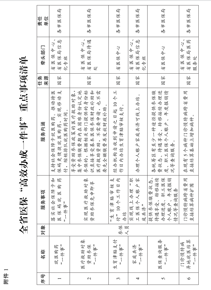 附件:1.全省医保“高效办成一件事”重点事项清单