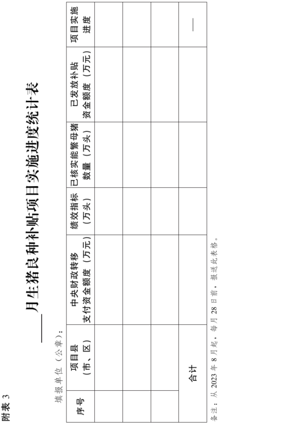 (三)加强项目监督。要强化监督管理,对项目落实情况进行监督检查,对弄虚作假、暗箱操作的行为,一经查实,全额追回补贴资金并依法依规严肃处理。要严格执行《农业产业发展资金管理办法》(财农〔2023〕11号)规定,做好资金使用管理,项目资金要专款专用,任何单位和个人不得挤占和挪用。各地要从2023年8月起,每月28日前,报送实施进度表(附件3),并及时建立生猪良种补贴工作和资金发放档案。