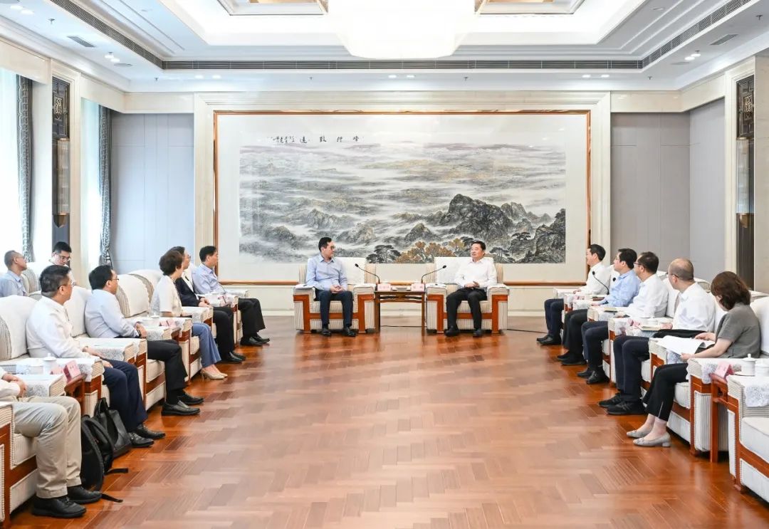 上海国盛集团、浦发银行、上海电气、中国太保、国泰君安、上汽集团等企业负责人,省领导张立林、姜有为参加会见。