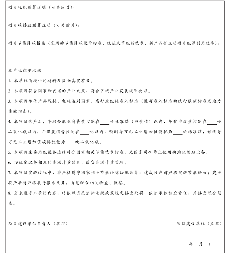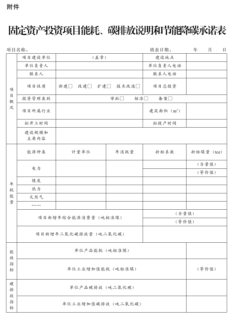 附件:固定资产投资项目能耗、碳排放说明和节能降碳承诺表