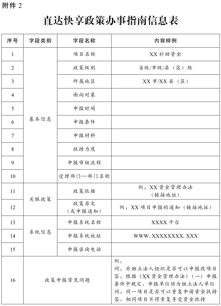 建立免申即享、直达快享常态化工作机制。各地区、各部门要及时修订与免申即享、直达快享工作要求不相适应的制度和标准规范,新制定的惠企强企政策原则上要按照免申即享、直达快享服务模式进行设计。新政策出台后要及时通过两个专区公布,并编制申报指南,规范接入专区。