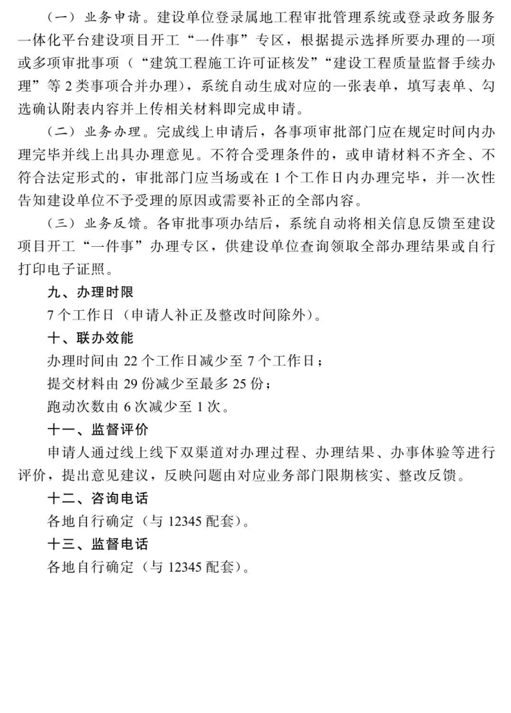各地可结合实际,探索将其他符合条件的事项一并纳入本地区建设项目开工“一件事”的事项范围。