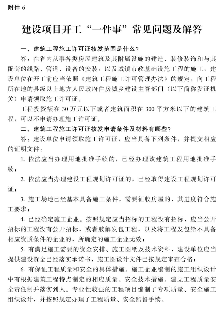 6.建设项目开工“一件事”常见问题及解答