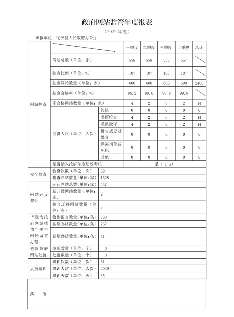 辽宁省政府网站监管年度报表