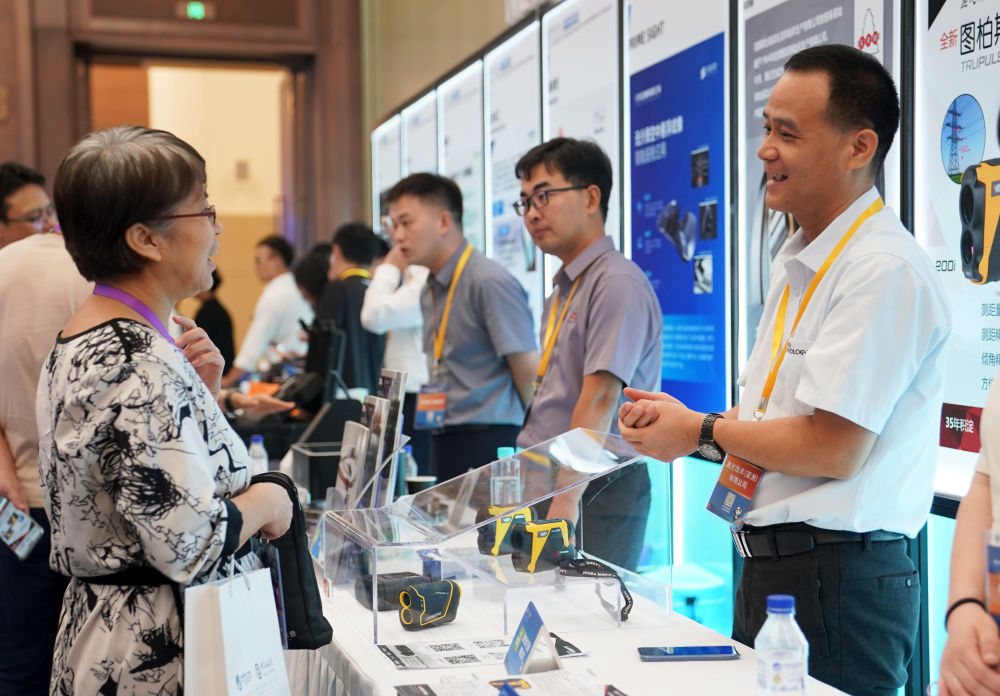 在第七届进博会技术装备、汽车展区展前供需对接会现场,展商工作人员(右)向采购商介绍企业产品。新华社发(陈浩明 摄)
