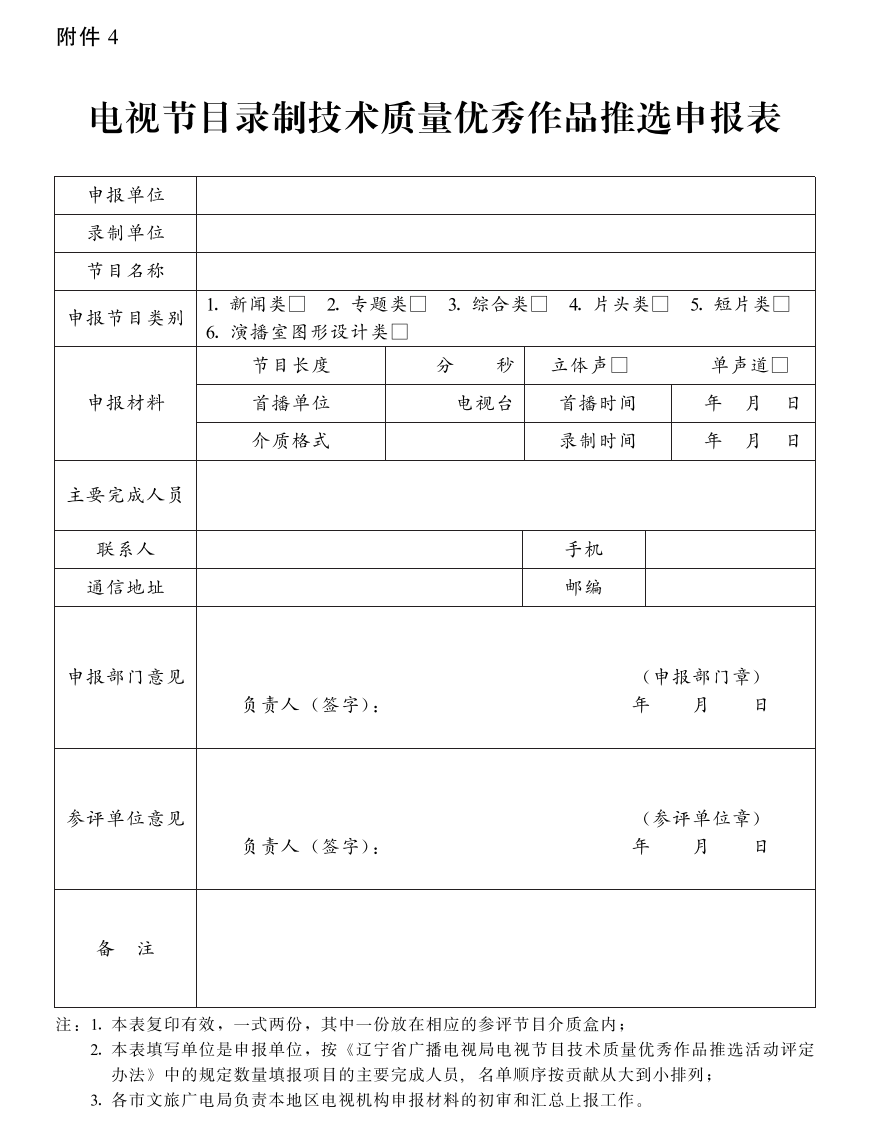 4.电视节目录制技术质量优秀作品推选申报表