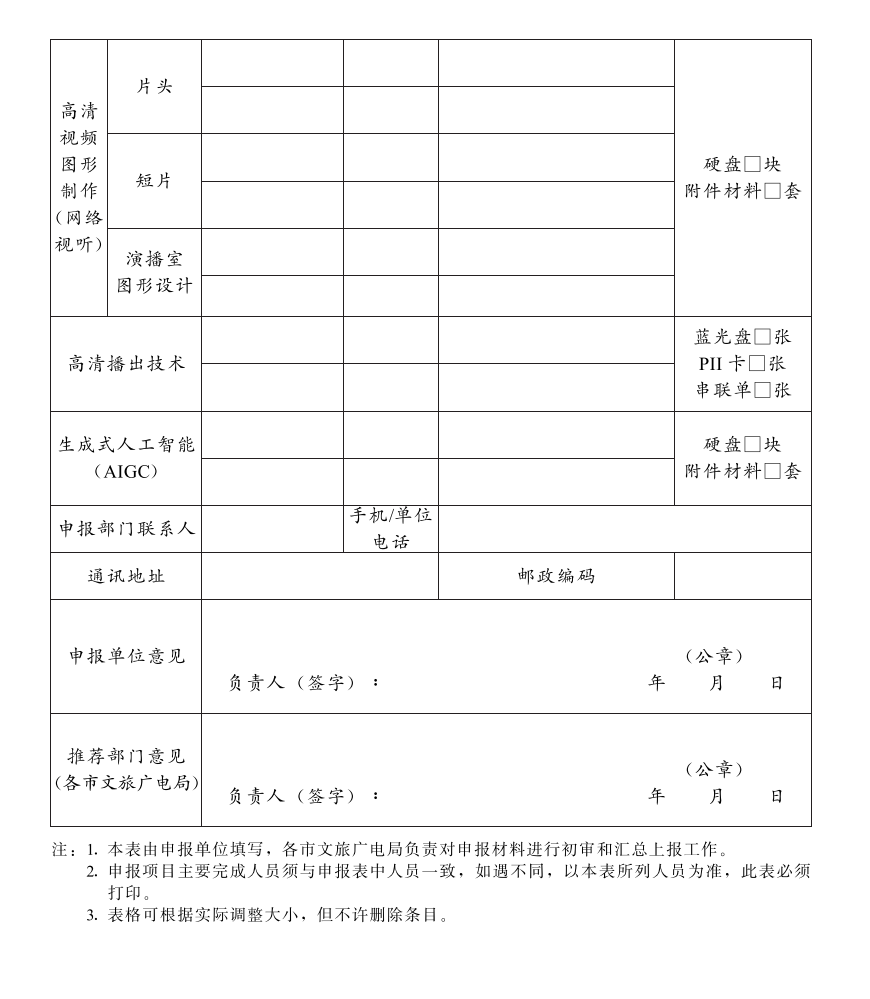 2.3生成式人工智能(AIGC)影像作品信号介质在报送同时应提供作品相应支撑材料,包括但不限于作品阐述、作品海报、技术文档、设计稿、应用场景、适用平台、交互程序、AI生成关键词、相关云平台、AI云服务费、本地化流程方案、模型训练方式等,支撑材料打印后与硬盘介质一并提交,不适合打印的材料可存放在硬盘介质中。