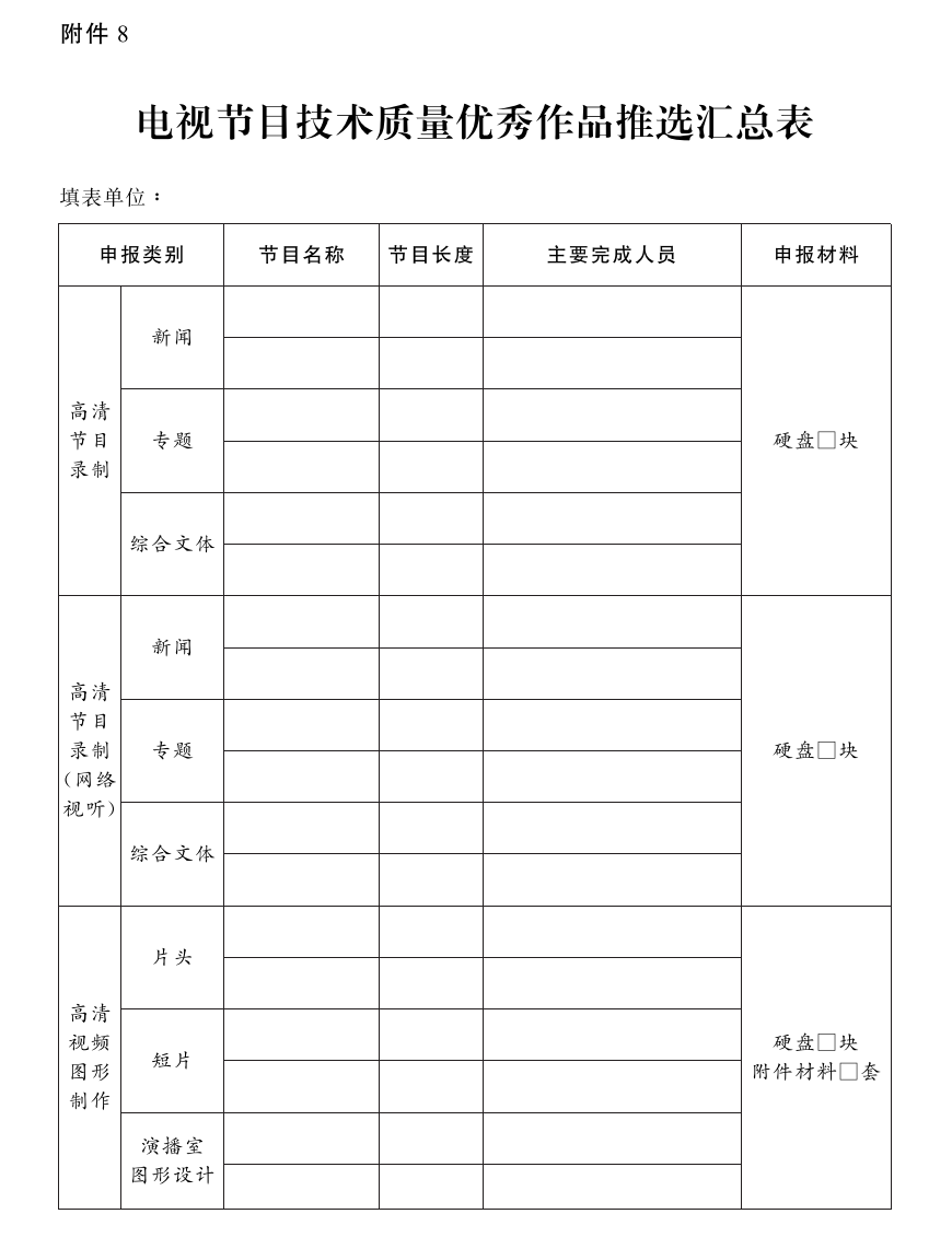 8.电视节目技术质量优秀作品推选汇总表